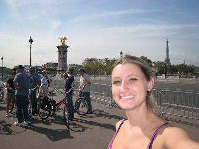 We met the guide, Crystal, at 11:00 at the Eiffel Tour. She happened to be from Austin! Yea! There were about 20 of us on the trip to bike around Paris. We saw a ton of sites before lunch including, the Ecole Militaire (Military School), the new and very modern peace monument, Napolean’s tomb, Rodan’s museum, Les Invalides (the Pope was going to be in the adjacent plaza that Friday!), and the Place de la Concorde…where an Egyption monument now stands. This was on the site where many of the French beheadings by guillotine happened.